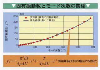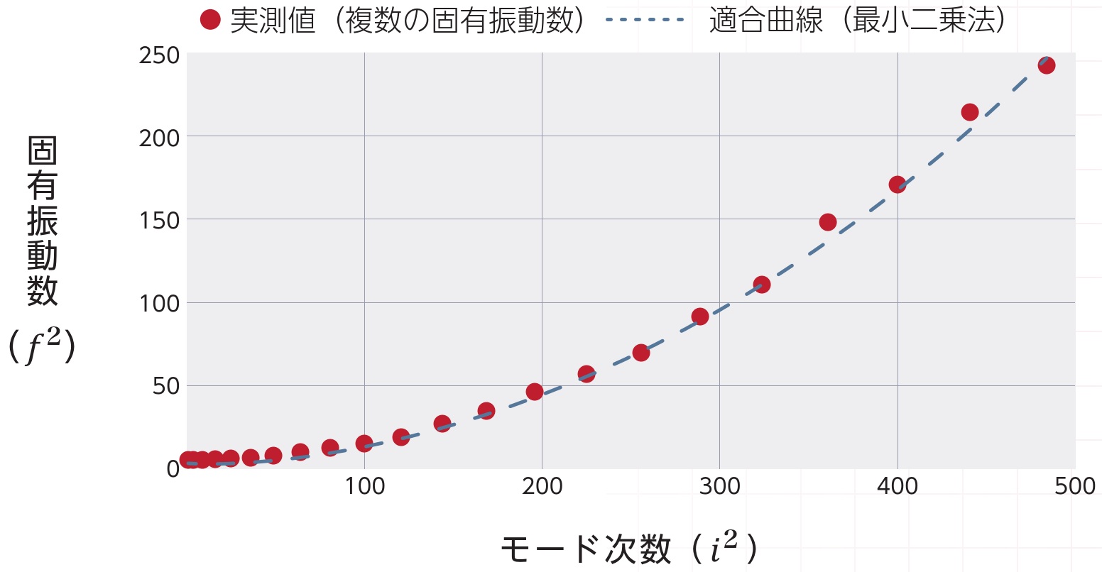 複数個の振動データ(次数-振動数)から最小二乗法により、EIとTを算出