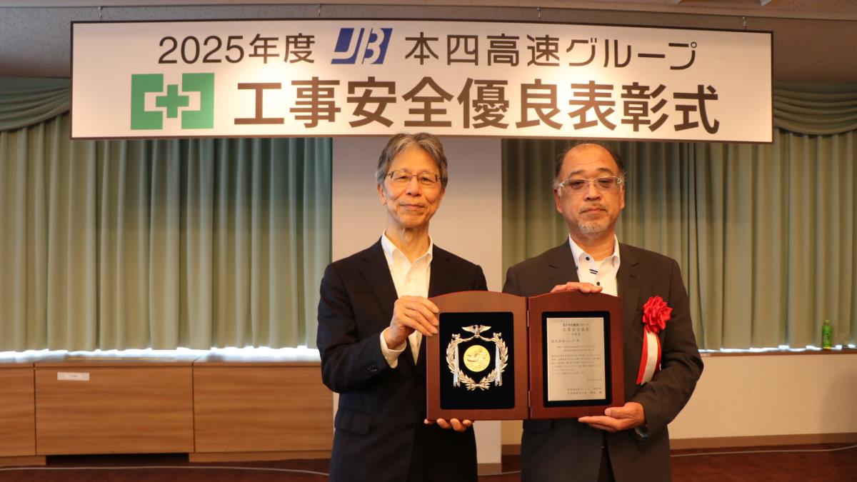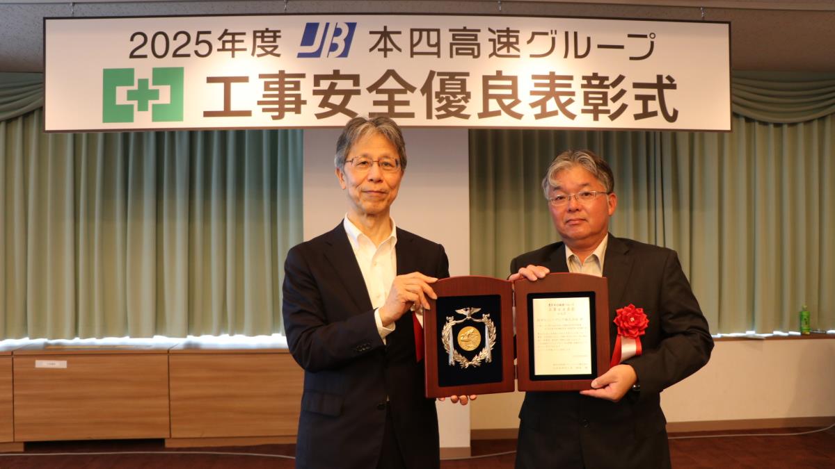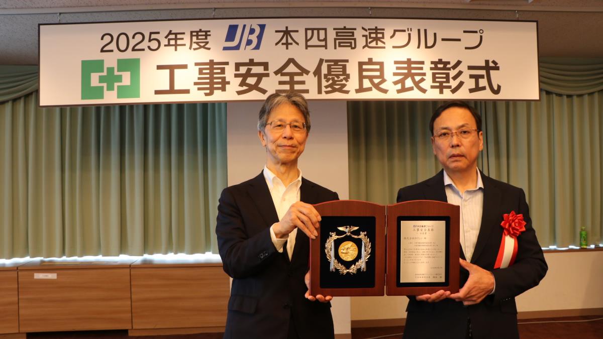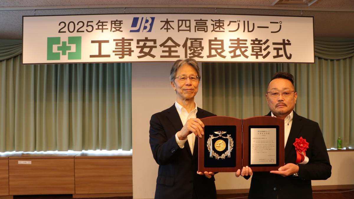 2025年6月19日に本州四国連絡高速道路株式会社と合同で「2025年度JB本四高速グループ工事安全優良表彰式」が行われ、当社代表取締役社長 福永 勧より表彰状を授与いたしました。