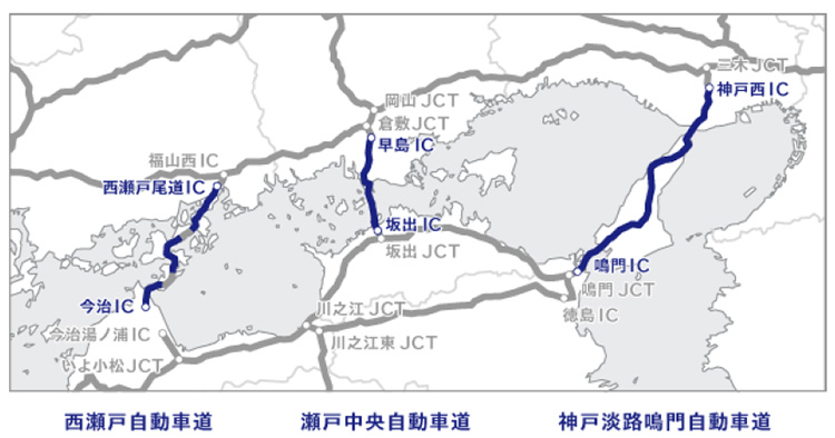 ※ 本州四国連絡橋:本州と四国を結ぶ17橋の長大橋で構成される3路線の交通路