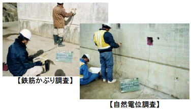 鉄筋かぶり、腐食度、中性化深さ、塩化物濃度(写真-1参照)