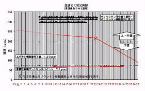 ※塗膜厚データにより、各橋梁毎に塗膜劣化曲線(図-1参照)を作成する。